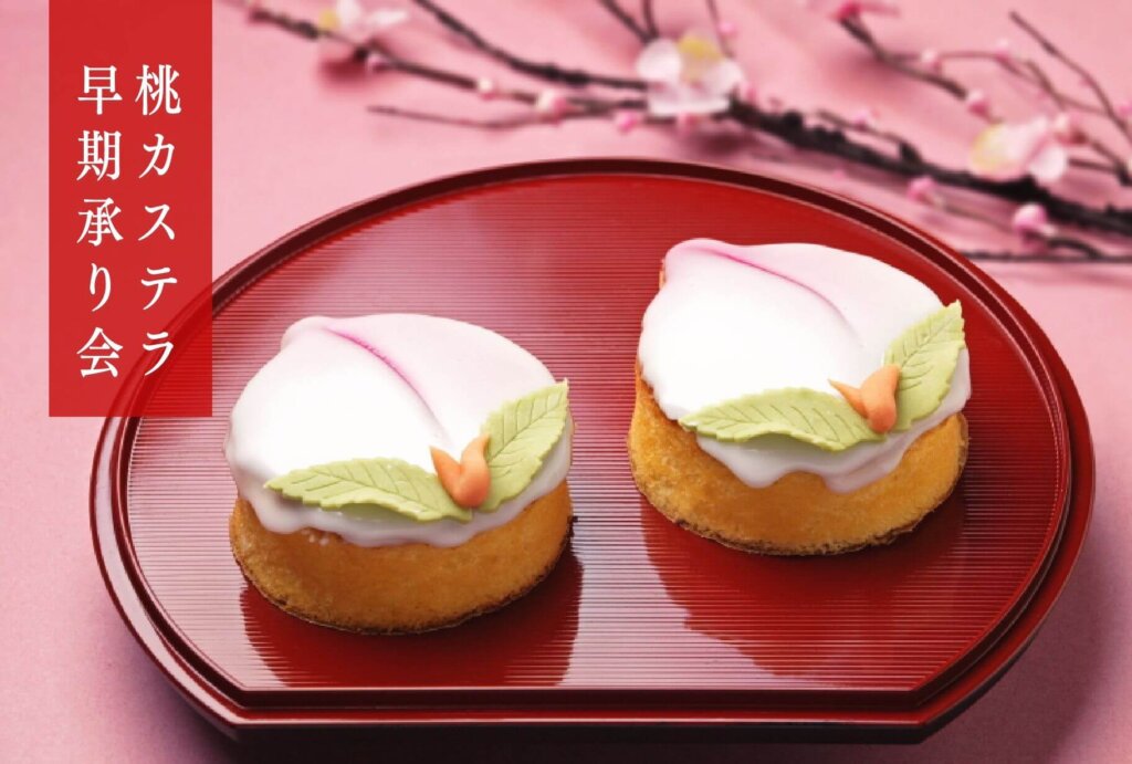 期間中、開催店舗へご来店のうえ、桃カステラの発送をお申し込みの場合